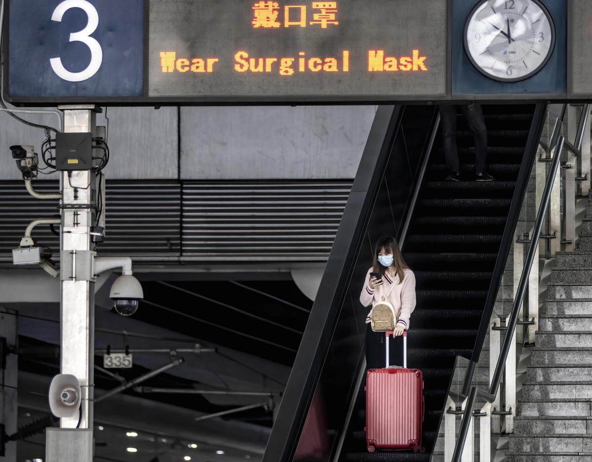 epa08288695 A woman wearing a face mask rides an escalator at the High Speed Railway Station in Guangzhou, Guangdong province, China, 12 March 2020. Daily life in China has been heavily affected by the outbreak of the COVID-19 disease caused by the SARS-CoV-2 coronavirus, which originated in the Chinese city of Wuhan and spread around the world with China, Italy, Iran, and South Korea heavily affected. The disease has so far killed at least 4,600 people and infected over 123,000 others worldwide. EPA/ALEX PLAVEVSKI