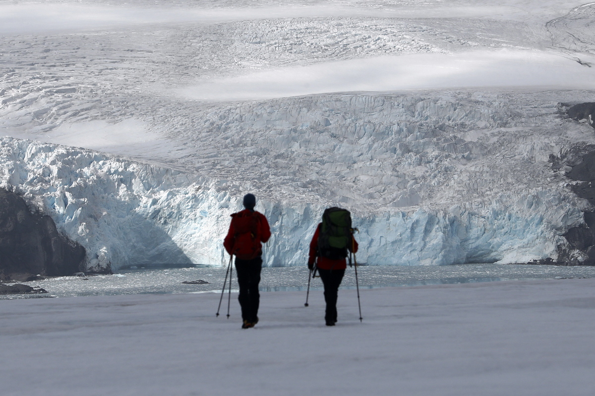 epaselect epa08381211 (47/49) Two scientists walk towards the Collins Glacier in the King George Island in the South Shetland Islands, Antarctica, 10 March 2020. Every year the Chilean Antarctic Institute (INACH) organizes an Antarctic Scientific Expedition (ECA) to the White Continent in its 56th edition 49 projects carried out fieldwork, with over 500 people, ranging from logistics to national and international scientists being part of it. By late March four different projects were closing the campaign at INACH's main scientific base, Professor Julio Escudero, at the most northern tip of the Chilean Antarctic Territory. Two investigations covered the ecophysiology of lichen and the coupling of Antarctic fish species to a rapidly changing environment. The footprint of human presence in the region and melting glaciers concerning climate change were the other two research themes. Antarctic Science, in all its different fields, remains fundamental to understand the impact of climate change and can provide information and strategies to society to face future developments. EPA/FELIPE TRUEBA ATTENTION: For the full PHOTO ESSAY text please see Advisory Notice epa08381164