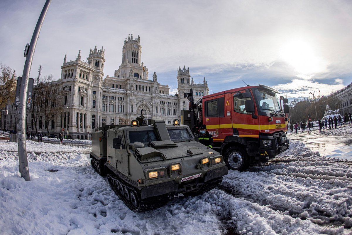 Ησυχία επικρατούσε σήμερα το πρωί στην ισπανική πρωτεύουσα, όπου κυκλοφορούσαν πολύ λίγα οχήματα. Ολόκληρες συνοικίες εξακολουθούσαν σήμερα να μην έχουν καθαριστεί από τα χιόνια, ενώ μόνον οι μεγάλοι οδικοί άξονες είχαν ανοιχτεί και τα πεζοδρόμια παρέμεναν στην πλειονότητά τους ακατάλληλα να χρησιμοποιηθούν από πεζούς.