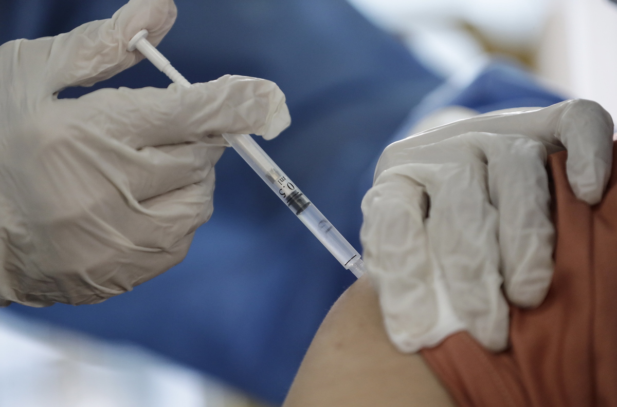 epa08967740 A health worker receives a dose of Covishield Covid-19 vaccine at Yangon General Hospital, in Yangon, Myanmar, 27 January 2021. Myanmar began its vaccination drive after receiving 1,5 million doses of Covishield vaccine from neighboring India. EPA/LYNN BO BO