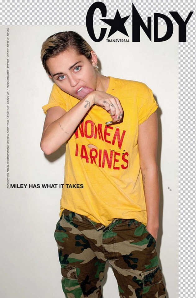 Κι εκεί που νομίζατε ότι έχετε δει κάθε εκατοστό του κορμιού της Αμερικανίδας ποπ σταρ να που η Miley έχει να δείξει κι άλλο. Πόζαρε για τα 9, διαφορετικά, εξώφυλλα του περιοδικού Candy, του περιοδικού μόδας «που αναδεικνύει τις τραβεστί, τρανσέξουαλ, τους crossdressers και τους ανδρόγυνους σε όλη τους τη δόξα». Η 22χρονη Miley φωτογραφήθηκε από τον γνωστό έκφυλο φωτογράφο Terry Richardoson, που η βιομηχανία μόδας αγαπά να μισεί, ενώ την συνέντευξη πήρε ο γνωστός τρανς συγγραφέας, συντάκτης και φωτογράφος Amos Mac.