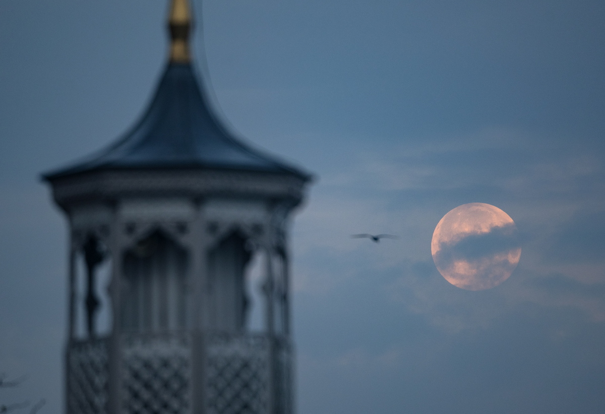 Το σούπερ φεγγάρι του Μαΐου, ηδεύτερη πανσέληνος του μήνα, κρέμεται στον ουρανό πίσω από τον μιναρέςτου τζαμιού Uryanizade Ahmet Esat Efendi στην Κωνσταντινούπολη, Τουρκία, 08 Μαΐου 2020. EPA / ERDEM SAHIN