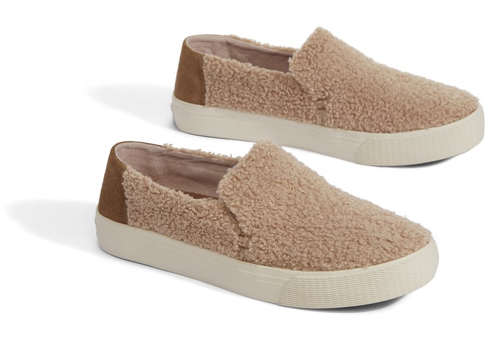 Τα τέσσερα γυναικεία σχέδια από την TOMS Mouton Family σειρά σε λευκό και ανοιχτό κάμελ faux μουτόν αποτελούνται από: κλασσικό χειμωνιάτικο chelsea boot TOMS και ένα άνετο all day στυλάτο slip-on που πάει με όλη μας την γκαρνταρόμπα. Η νέα σχεδιαστική πρόταση της συλλογής για φέτος είναι το BOTA, μια δημιουργική μίξη από αμερικάνικο countryside με δετό μποτίνι ιδανικό για παντελόνια. Το συγκεκριμένο κυκλοφορεί με λευκό faux μουτόν με διακριτικά μεταλιζέ σχοιχεία και ειδική gore σόλα, ένα τεχνικό υλικό που κατακτά σιγά σιγά τον κόσμο της Μόδας. Τέλος, δεν θα μπορούσε να λείπει και μια χειμωνιάτικη πρόταση για την iconic πλέον alpargata, αυτή, σε total fluffy faux μουτόν!