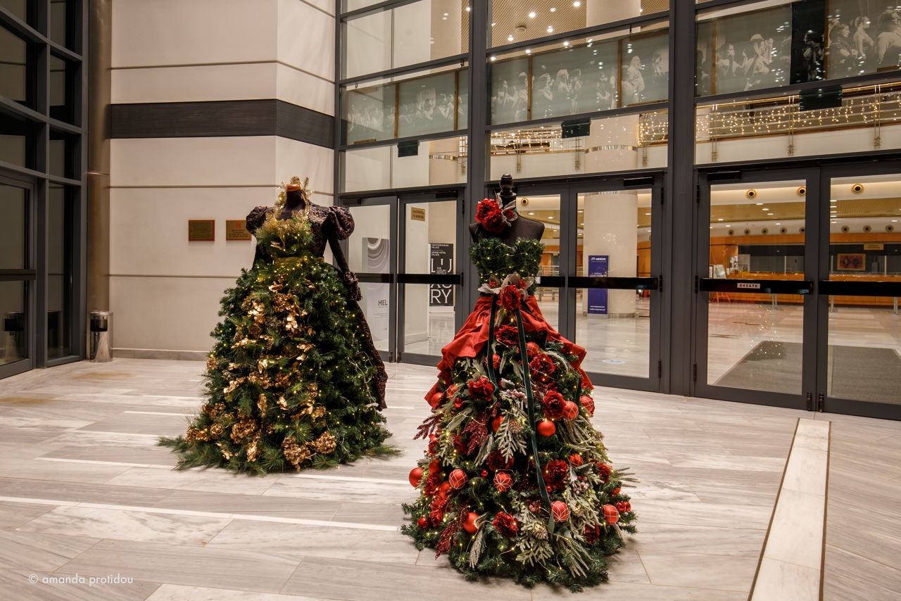 Το Μέγαρο άνοιξε το βεστιάριό του και έντυσε με χριστουγεννιάτικη διάθεση οκτώ κούκλες αξιοποιώντας κοστούμια από παλαιότερες οπερατικές και θεατρικές παραγωγές του. Πρόκειται για καλλιτεχνικές δημιουργίες σε επιμέλεια της Τάνιας Χατζηγκόντσιου, επάνω σε μια ιδέα του προέδρου του ΟΜΜΘ Βασίλη Γάκη, βασισμένη σε μια χριστουγεννιάτικη βιτρίνα που είχε δει σε ένα ταξίδι του στο εξωτερικό.