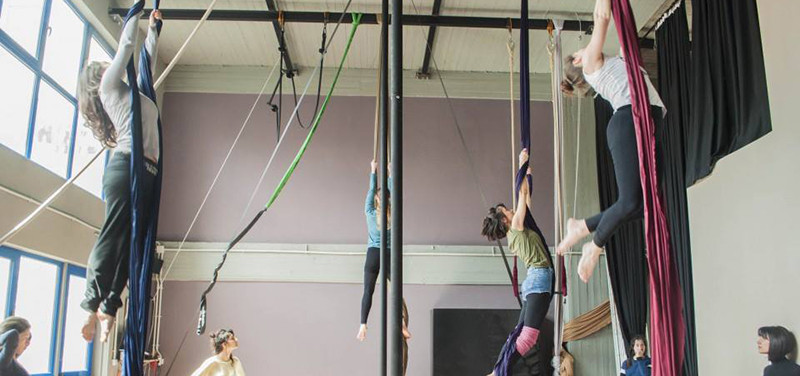 Στα τέλη του 1950, σε μια Σχολή Τσίρκου στη Γαλλία, μια νεαρή κοπέλα επέλεξε να κάνει ένα πρωτοποριακό δρώμενο χρησιμοποιώντας ένα τόπι υφάσματος. Αυτή ήταν και η πρώτη εμφάνιση των ακροβατικών πάνω σε πανιά. Πολλές δεκαετίες αργότερα, το 1998, τα εναέρια ακροβατικά με πανιά έγιναν ευρέως γνωστά από τις Isabelle Vaudelle και Isabelle Chassé, όταν οι δύο καλλιτέχνιδες έκαναν μια πρωτότυπη παρουσίαση κατά τη διάρκεια της παράστασης «Quidam» του Cirque du Soleil. Άλλοι ισχυρίζονται πως ο André Simard, ειδικός στην έρευνα και την ανάπτυξη των ακροβατικών φιγούρων του Cirque du Soleil, είναι ο θεμελιωτής τους. Τα εναέρια ακροβατικά διαδόθηκαν γρήγορα και χρησιμοποιήθηκαν σε πολλές εντυπωσιακές παραστάσεις τσίρκου σε ολόκληρο τον κόσμο. Λίγα χρόνια πριν έκαναν την εμφάνισή τους και οι πρώτες σχολές ακροβατικών, με πολλούς χορευτές να τις προτιμούν σαν μια εναλλακτική μέθοδο γυμναστικής, έκφρασης και πάνω από όλα χορού.