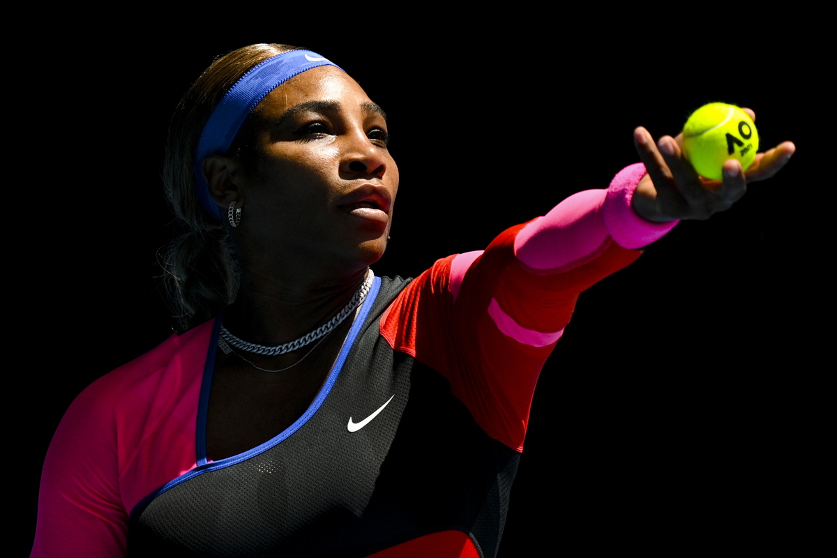 epa09005659 Serena Williams of the United States of America in action during her third round women's singles match against Anastasia Potapova of Russia at the Australian Open Grand Slam tennis tournament in Melbourne, Australia, 12 February 2021. EPA/DEAN LEWINS