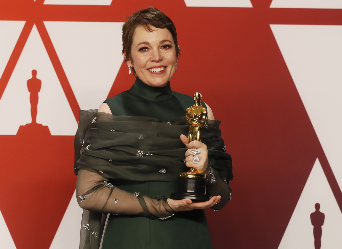 epa07395386 Olivia Colman holds her award for Actress in a Leading Role for 'The Favourite;' as she poses in the press room during the 91st annual Academy Awards ceremony at the Dolby Theatre in Hollywood, California, USA, 24 February 2019. The Oscars are presented for outstanding individual or collective efforts in 24 categories in filmmaking. EPA/ETIENNE LAURENT
