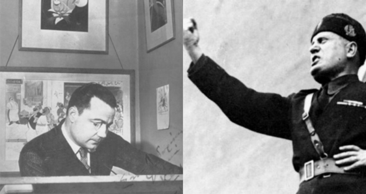 Ο Αλέκος Λιδωρίκης συνάντησε και μίλησε με τον Ντούτσε, στις 24 Ιανουαρίου του 1936, στη δικτατορική φωλιά του στο Παλάτσο Βενέτσια της Ρώμης. Η συνέντευξη δημοσιεύτηκε σε τρεις συνέχειες, στη νεοεκδιδόμενη τότε ριζοσπαστική εφημερίδα «Ελεύθερη Γνώμη», στην οποία ο Λιδωρίκης ήταν αρχισυντάκτης. Ο Μουσολίνι μόνος, όρθιος στο τεράστιο, γυμνό και παγερό γραφείο του, κράτησε όρθιο και τον Έλληνα δημοσιογράφο για 40 λεπτά της ώρας και του απάντησε στις ερωτήσεις για τον Ιταλοαιθιοπικό Πόλεμο, τη μεσογειακή σύρραξη, το σοσιαλισμό, τη μοναρχία και τη δικτατορία, για τις κυρώσεις, για την Ελλάδα κ.ά.