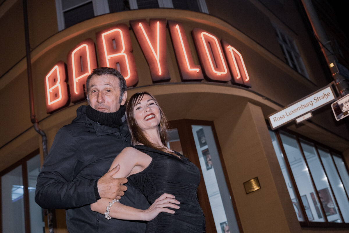 Ο πρωταγωνιστής και σκηνοθέτης της ταινίας “Νυχτερινός Εκφωνητής”, Ρένος Χαραλαμπίδης, με την συμπρωταγωνίστριά του Μαργαρίτα Αμαραντίδη, έξω από τον κινηματογράφο Babylon.