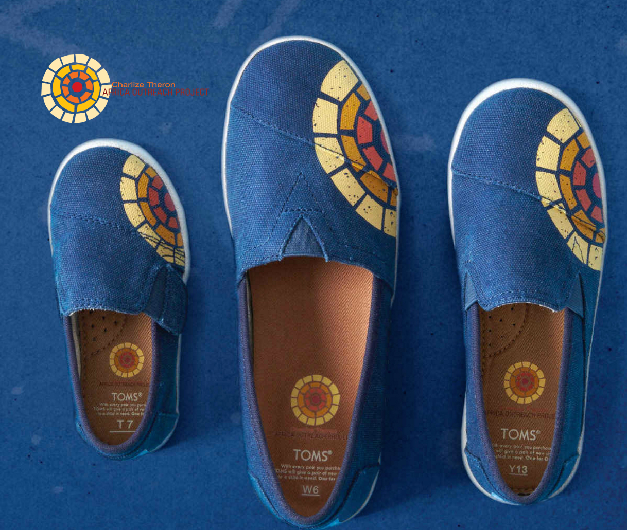 Σε μια εορταστική χρονιά γεμάτη ειδικές συνεργασίες, η TOMS συνεχίζει σε δημιουργικό ρυθμό ενώνοντας δυνάμεις με τον οργανισμό «Charlize Theron Africa Outreach Project»(CTAOP), συνεισφέροντας στην ανάπτυξη προγραμμάτων εκπαίδευσης και υποστήριξης νέων ανθρώπων ενάντια στη νόσο του HIV/AIDS. Είναι η τρίτη φορά που το CTAOP συνεργάζεται με το brand για να δημιουργήσουν ένα capsule collection αφιερωμένο στην ενίσχυση των σκοπών της οργάνωσης. «Η γενιά μας μπορεί να νικήσει το AIDS», δηλώνει η Charlize Theron ιδρύτρια του CTAOP.