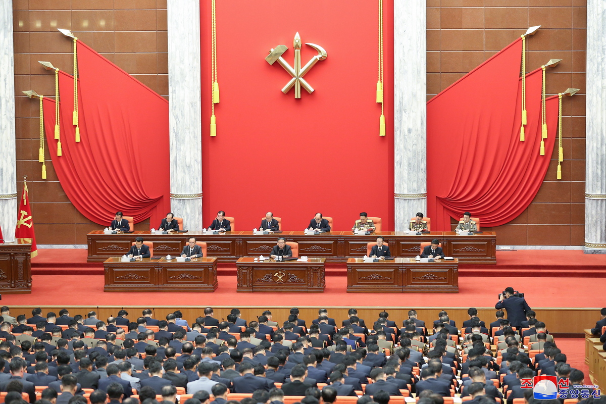 epa09444390 A photo released by the official North Korean Central News Agency (KCNA) shows North Korean Supreme leader Kim Jong-un (C) presiding over the the third enlarged meeting of the Political Bureau of the 8th Central Committee of the Workers' Party of Korea (WPK), held at the office building of the Party Central Committee in Pyongyang, North Korea, 02 September 2021 (issued 03 September 2021). EPA/KCNA EDITORIAL USE ONLY