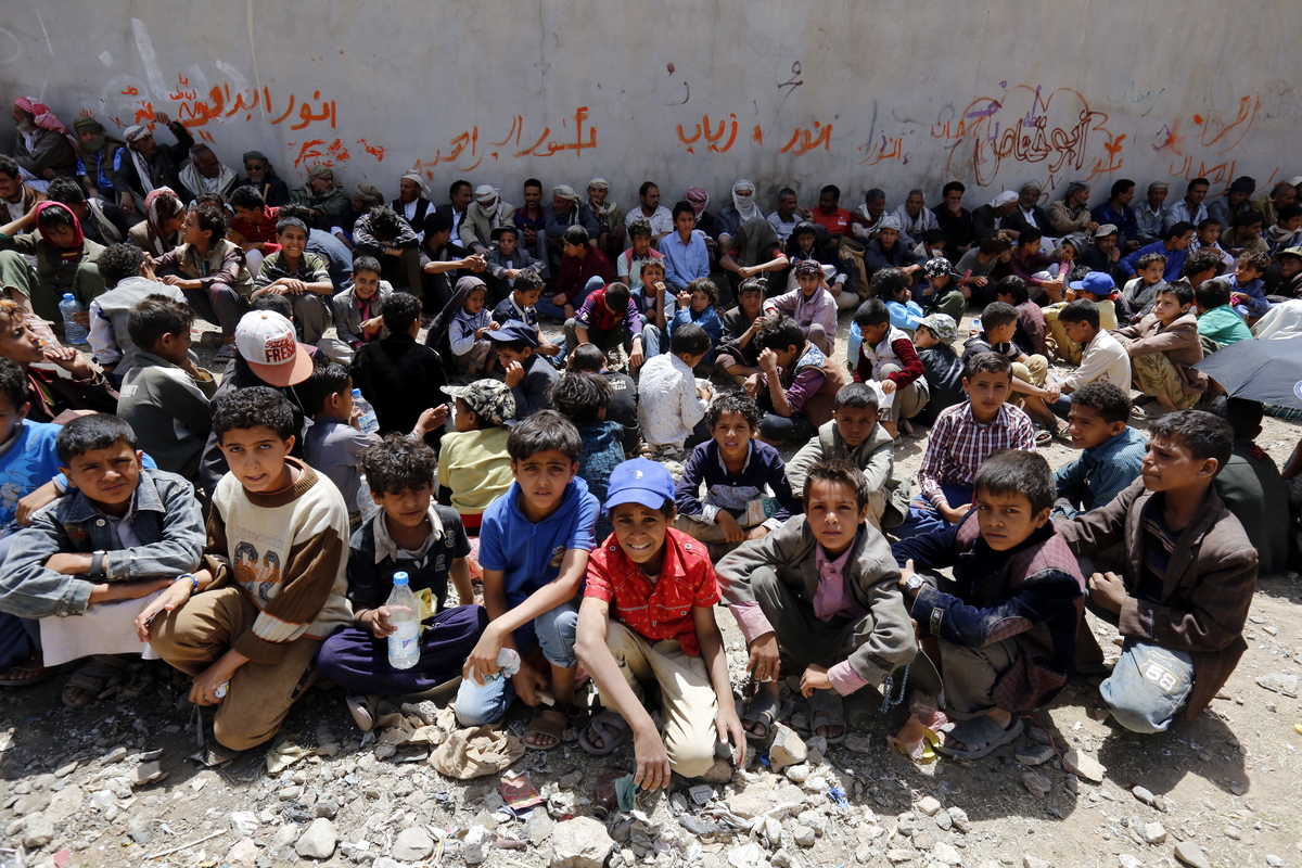 Παιδιά από την Υεμένη περιμένουν την σειρά τους για να πάρουν ένα πιάτο φαγητό για το Iftar, που μοιράζουν τοπικά φιλανθρωπικά δίκτυα. Το Iftar, είναι το γεύμα που παραδοσιακά λαμβάνεται αμέσως μετά τις προσευχές του ηλιοβασιλέματος και μετά την νηστεία όλης της ημέρας. Η σκληρή φτώχεια και η πείνα έχουν πλήξει το έθνος της Υεμένης, λόγω του πολέμου και του οικονομικού αποκλεισμού που υφίσταται. Σαναά,Υεμένη, 24 Μαΐου 2018. /EPA/YAHYA ARHAB