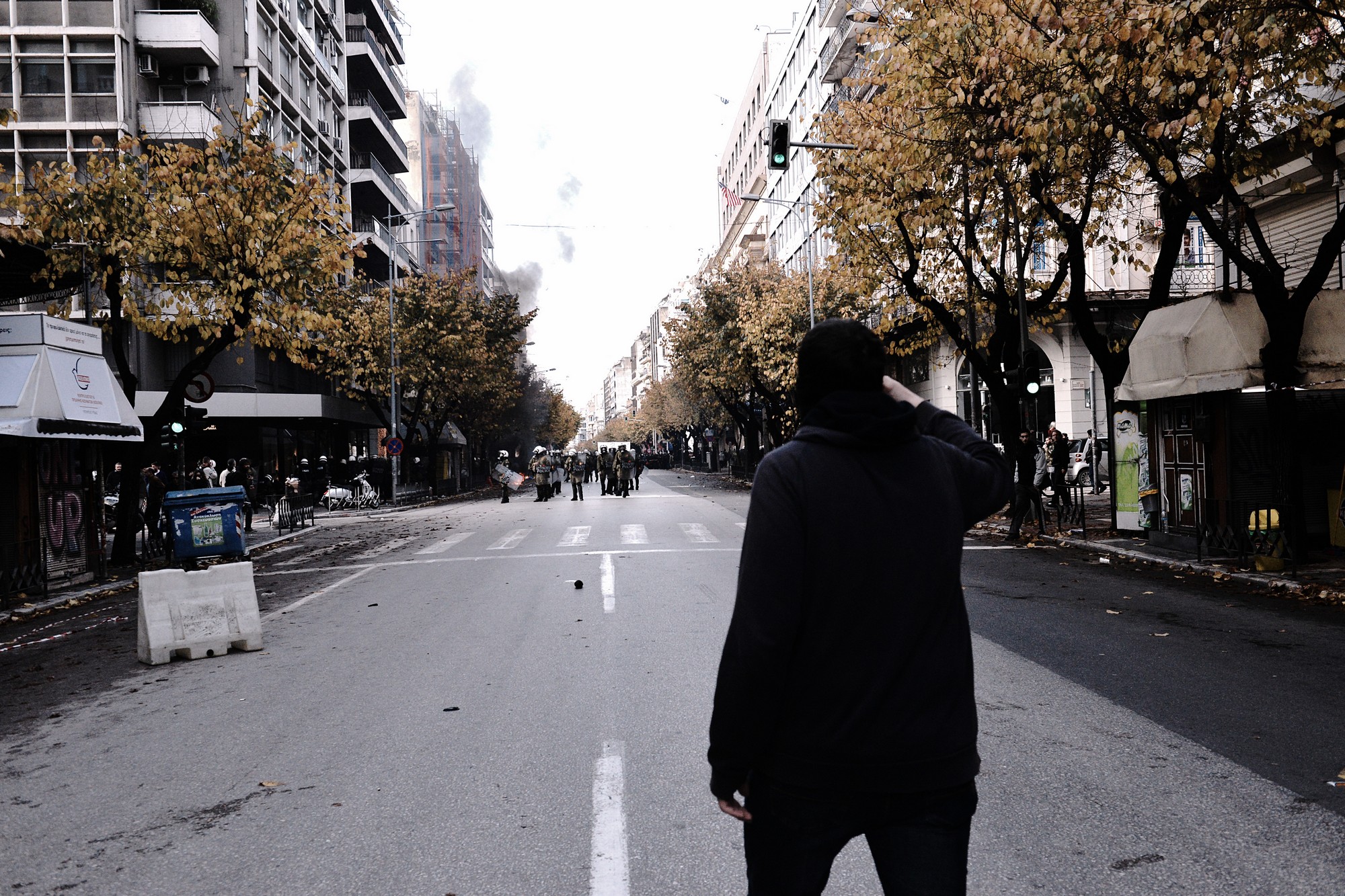 Κατά τη διάρκεια των επεισοδιών προκλήθηκαν υλικές ζημιές σε καταστήματα και τράπεζες, ενώ γνωστό πολυκατάστημα παραδόθηκε στις φλόγες. Λίγο μετά τις 15:30 διαδηλωτές έσπασαν την πόρτα του Εργατικού Κέντρου, το οποίο αυτή τη στιγμή τελεί υπό κατάληψη.Παράλληλα, άγριες συγκρούσεις μεταξύ ΜΑΤ και διαδηλωτών σημειώθηκαν έξω από το Αμερικανικό Προξενείο. Η πορεία στη συνέχεια χωρίστηκε στα δύο, ωστόσο αυτή την ώρα και τα δύο τμήματά της βρίσκονται ενωμένα στην οδό Εγνατία, στο ύψος της πλατείας Αριστοτέλους, ενώ ισχυρές αστυνομικές δυνάμεις παρακολουθούν τις κινήσεις διαδηλωτών και κουκουλοφόρων. Σύμφωνα με πληροφορίες η αστυνομία έχει ήδη προχωρήσει σε προσαγωγές, ενώ κατά άλλες πληροφορίες έχουν γίνει και συλλήψεις. Πηγή: iefimerida
