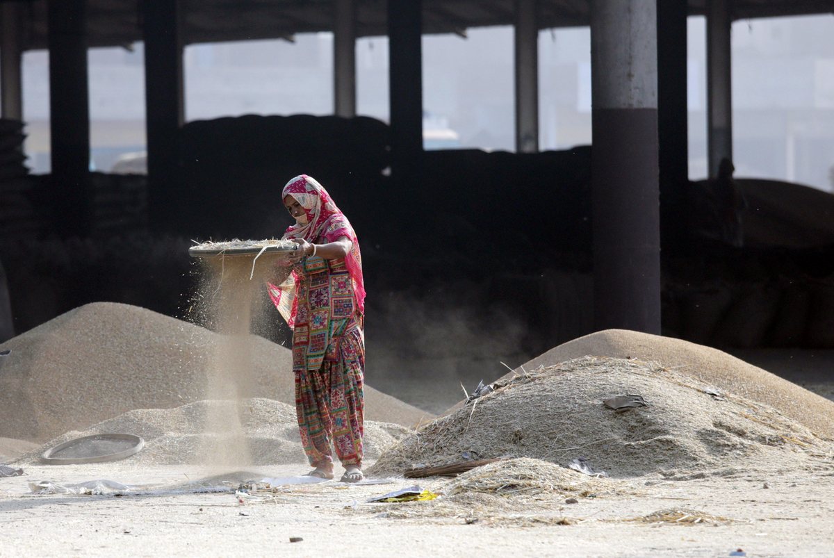 epa05285231 An Indian woman labourer winnows grains as she works in a grain market on the occasion of Labour Day in Amritsar, India, 01 May 2016. Labour Day or May Day is observed all over the world on the first day of the May to celebrate the economic and social achievements of workers and fight for labourers rights. EPA/RAMINDER PAL SINGH
