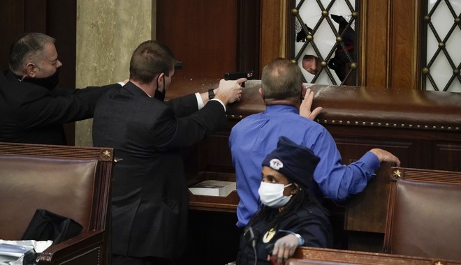 Η συνεδρίαση για την επικύρωση της νίκης Μπάιντεν από τη Γερουσία (στην οποία οι Δημοκρατικοί ανέκτησαν τον έλεγχο μετά τη σημερινή νίκη στη Τζόρτζια) διακόπηκε, ενώ υπάρχουν συγκεχυμένες πληροφορίες για πυροβολισμούς (update: μια γυναίκα, από την πλευρα των εισβολέων, πυροβολήθηκε στο στήθος και κατέληξε στο νοσοκομείο, ενώ οι αρχές ανακοίνωσαν των θάνατο αλλών τριών ανθρώπων έξω από το καπιτώλιο) και τα σόσιαλ μίντια έχουν γεμίσει με εικόνες ανθρώπων να σουλατσάρουν μέσα στο Καπιτώλιο φορώντας διακριτικά MAGA (Make America Great Again – το σύνθημα Τραμπ από το 2016) και κρατώντας σημαίες συνομοσπονδίας με το συμβολικό ρατσιστικό τουες φορτίο.
