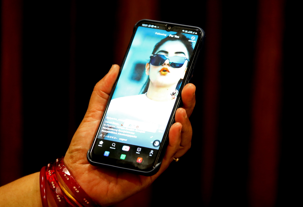 epa08516564 A woman watches a short video on the Chinese video-sharing app TikTok on her smartphone, in Bhopal, central India, 29 June 2020. India's national government in New Delhi has announced it is banning 59 Chinese phone applications – including the increasingly-popular apps TikTok, Helo and WeChat – citing national security concerns. The decision comes amid India's ongoing territorial dispute with China in the Galwan valley of the eastern Himalayan region of Ladakh. EPA/SANJEEV GUPTA