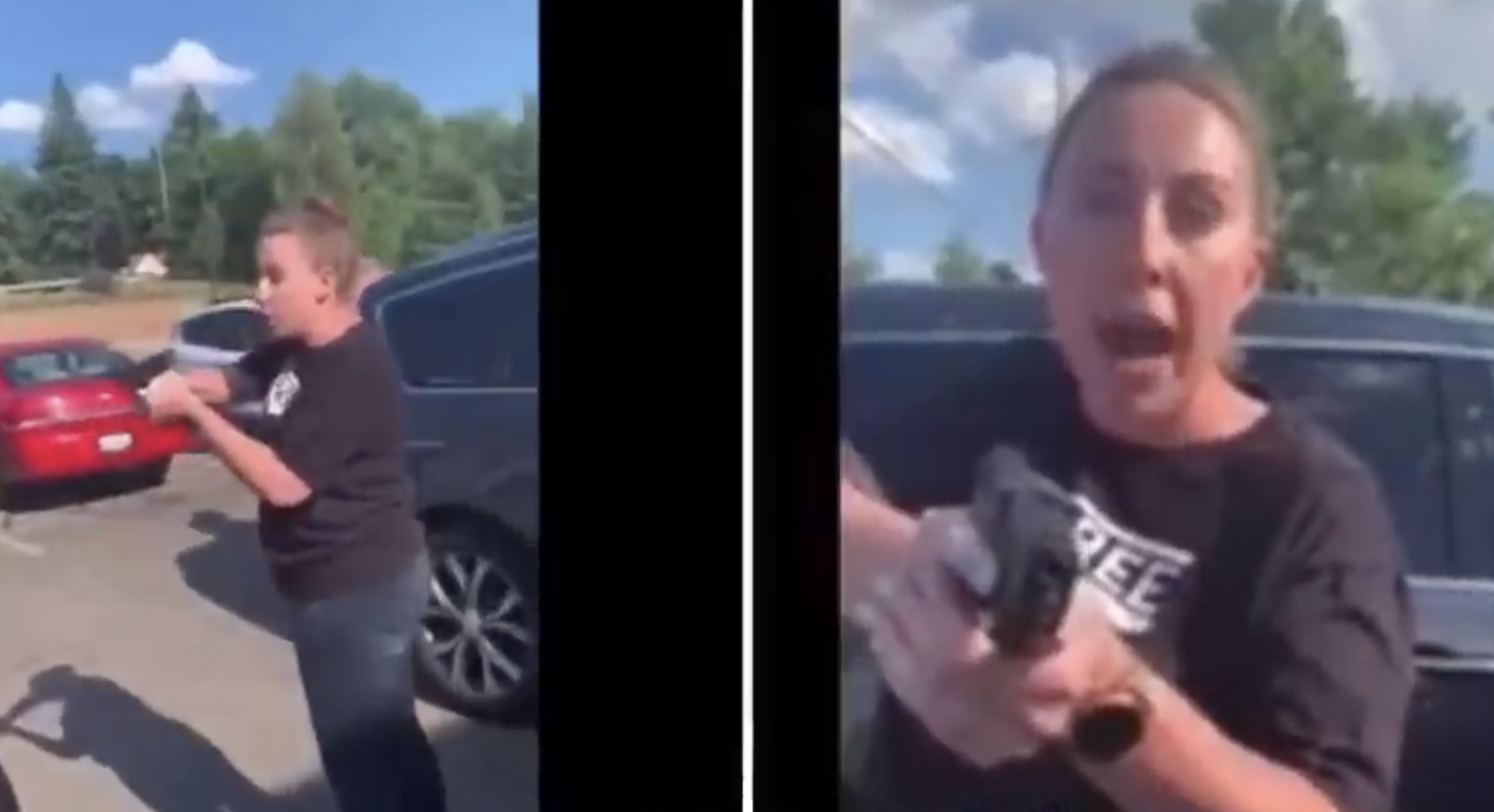 Η μαύρη γυναίκα είπε πως οι Wuestenber προσπάθησαν να τη χτυπήσουν, ενώ η λευκή γυναίκα κατηγόρησε την Hill πως χτύπησε το αυτοκίνητό της. Μάλιστα, όταν εκείνη βγαίνει από το όχημά της, κρατά στα χέρια της ένα όπλο, το οποίο στρέφει προς την… αντίπαλη πλευρά.