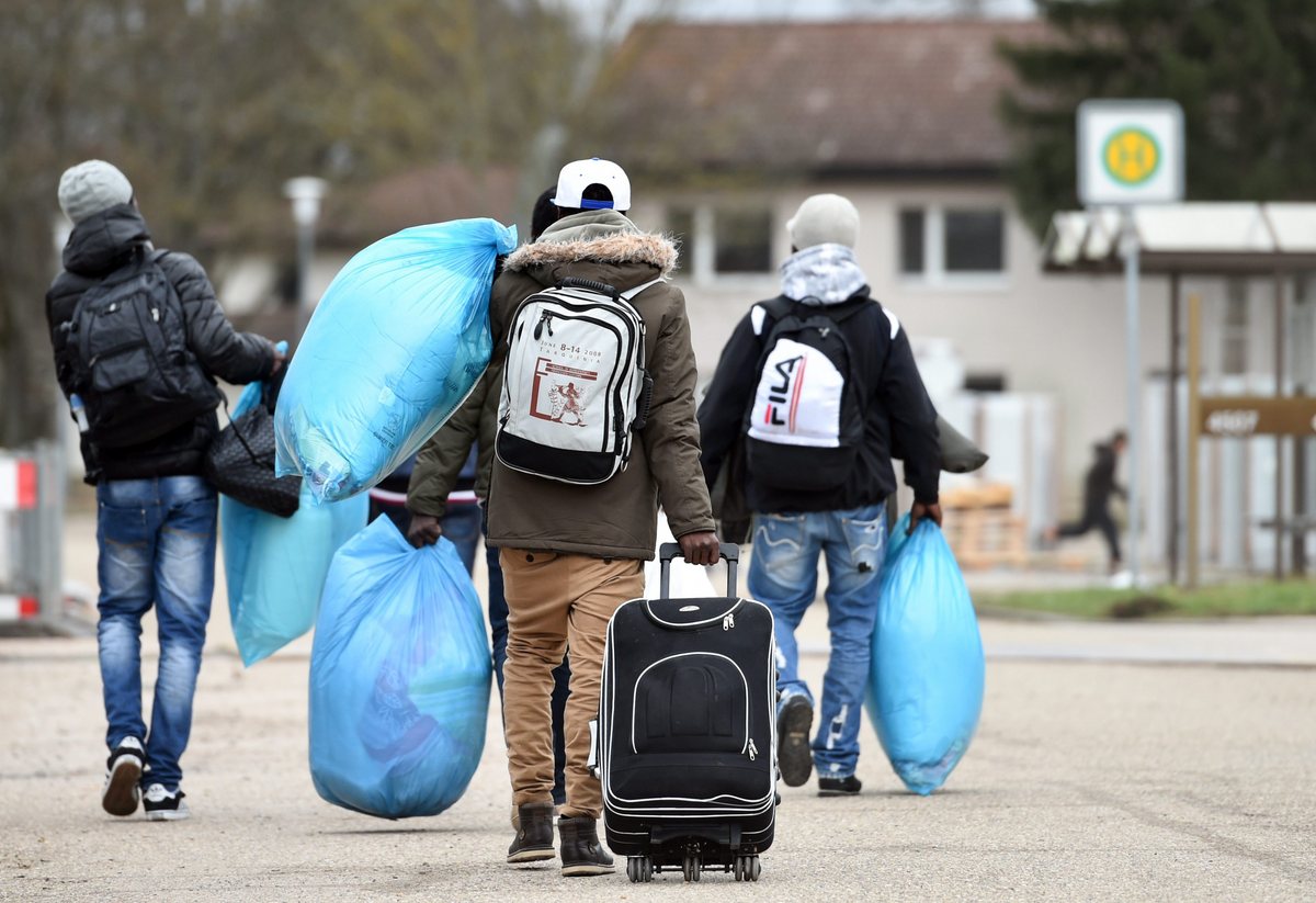 epa04537975 Refugees carry their belongings to their accomodations after arriving at an emergency shelter on the grounds of Patrick Henry Village (PHV) in Heidelberg, Germany, 22 December 2014. The former US Army installation, once home to some 16,000 US troops and their families, is turned into a refugee shelter more than one year after the major housing are was finally closed down in September 2013. EPA/UWE ANSPACH
