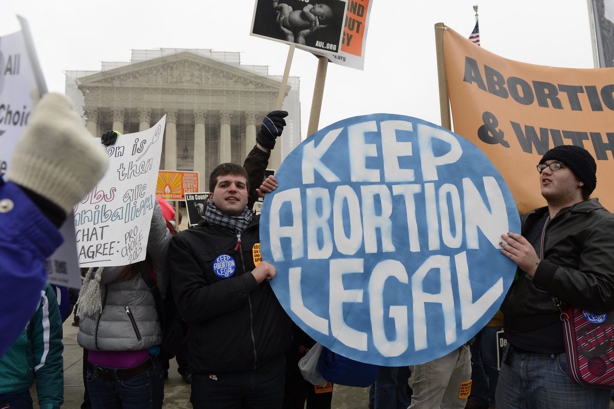 epa03555557 Pro-life and pro-choice activists hold signs expressing their opposing views during the March for Life to mark the 40th anniversary of Roe versus Wade, outside the Supreme Court in Washington DC, USA, 25 January 2013. Thousands of pro-life people held a rally and marched from the National Mall to the Supreme Court to protest the 22 January 1973 decision that legalized abortion in the United States. EPA/MICHAEL REYNOLDS