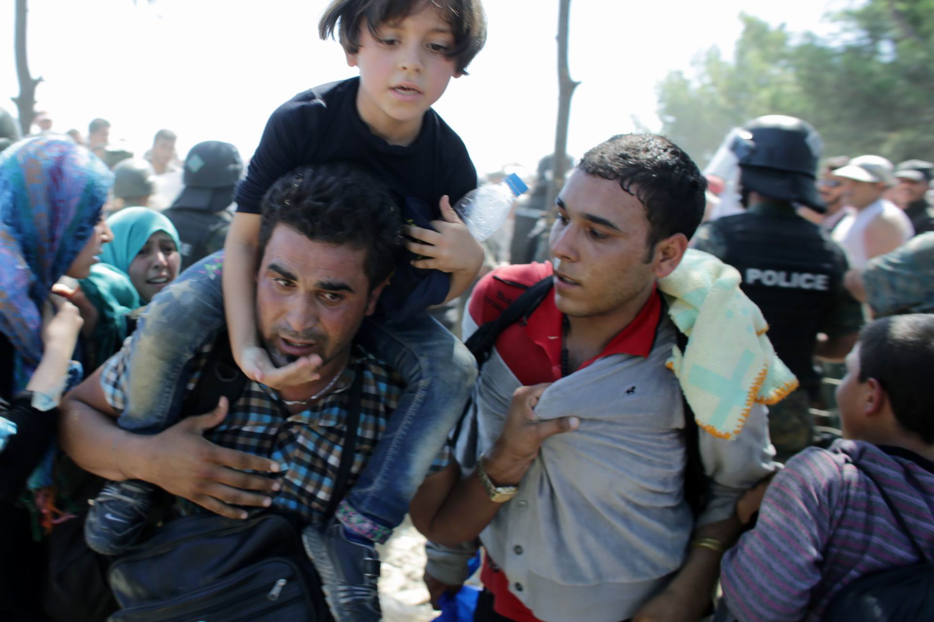 Προσπάθεια εξόδου. Σύροι πρόσφυγες περνούν τα σύνορα Ελλάδας - ΠΓΔΜ κοντά στο χωριό Γευγελή, προκειμένου να συνεχίσουν το ταξίδι τους με το τρένο προς την κεντρική και βόρεια Ευρώπη. Τρίτη 2 Σεπτεμβρίου 2015.
