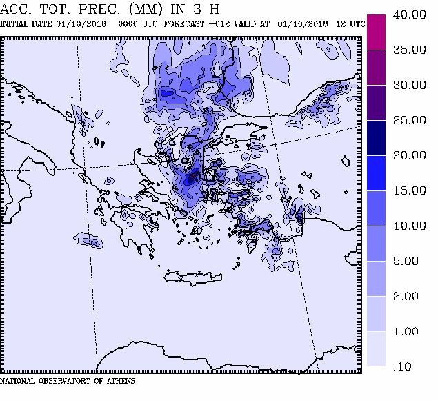Στους παρακάτω χάρτες απεικονίζεται η προβλεπόμενη κατανομή των βροχοπτώσεων για τις μεσημεριανές και βραδινές ώρες της Δευτέρας: