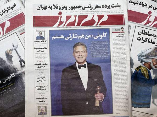 «Είμαι και εγώ Charlie». Δεν έχει καμία σημασία αντη φράση αυτή είπε (και) ο αγαπητός σε όλο τον κόσμο George Clooney, θέλοντας να δείξει με αυτόν τον τρόπο την αλληλεγγύη του στο σατυρικό περιοδικό Charlie Hebdo, που έπεσε θύμα της πρόσφατης τρομοκρατικής επίθεσης στο Παρίσι. Η δημόσια στήριξη του στο γαλλικό έντυπο ήταν αρκετή για να λογοκριθεί η εικόνα του και να οδηγηθεί σε κλείσιμο η εφημερίδα που του αφιέρωσε το πρωτοσέλιδό της. Όλα αυτά τα ευχάριστα έγιναν στο Ιράν, όπου η εφημερίδα The Mardom e-Emruz έβαλε στην πρώτη της σελίδα τη φωτογραφία του Clooney, ο οποίος έφερε καρφίτσα με τον τίτλο του σατυρικού περιοδικού Charlie Hebdo. Αυτό ήταν αρκετό για τις δικαστικές αρχές της χώρας, που διέταξαν το κλείσιμο του εν λόγω εντύπου, καθώς θεωρήθηκε «ένοχο». Για ποια πράξη; Μα ακριβώς γιατί επέλεξε να βάλει στο εξώφυλλό του τη φωτογραφία του Αμερικανού ηθοποιού με τη σχετική κονκάρδα. Μάλιστα, ο τίτλος του πρωτοσέλιδου («Είμαι και εγώ Charlie») είναι αυτός που έκανε τους Ιρανούς δικαστές να βγουν έξω από τους…τηβέννους τους, χαρακτηρίζοντας το δημοσίευμα «προσβλητικό»για τη δημόσια αιδώ.