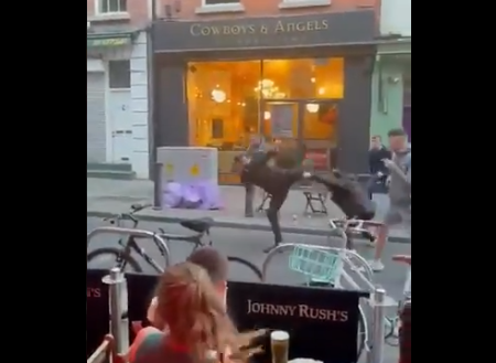 Μια παρέα ρατσιστών στην Ιρλανδία αποφάσισε πως είναι μια καλή ιδέα να πλησιάσουν το τραπέζι μιας μαύρης εγκύου γυναίκας, παρενοχλώντας την και πετώντας της καπνό. Στο μεταξύ, δεν σταμάτησαν εκεί, άρχισαν να επιτίθενται και στους εργαζόμενους σερβιτόρους στο καφέ. Οι σερβιτόροι όμως δεν αστειεύτηκαν και κατέληξαν να δείχνουν την πόρτα στον ρατσισμό, κανονικότατα, υπερασπιζόμενοι και την έγκυο και τους εαυτούς τους και τα νεύρα μας.