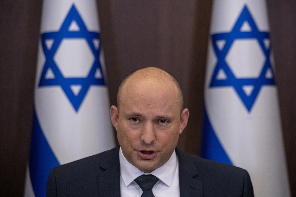 epa09581294 Israel’s Prime Minister Naftali Bennett arrives for a weekly cabinet meeting at his office in Jerusalem, 14 November 2021. EPA/ARIEL SCHALIT / POOL POOL PHOTO