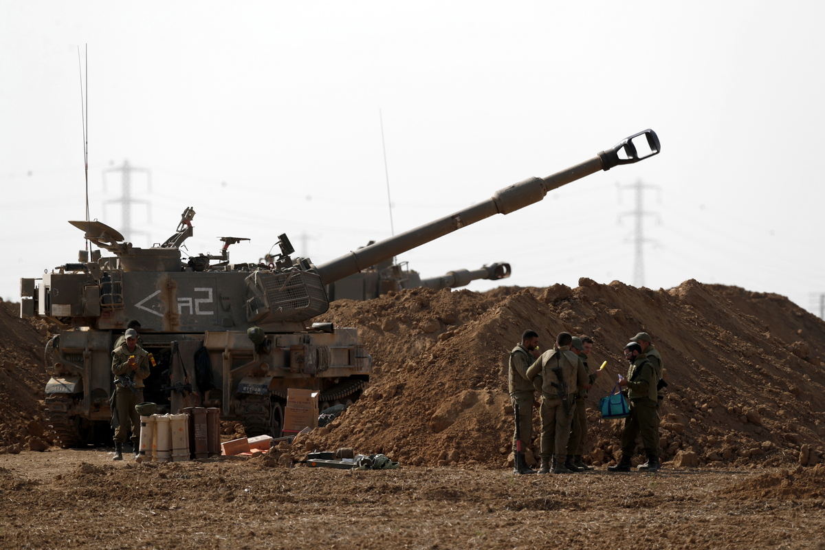 epa07992820 Israeli soldiers stand near artillery unit deployed at the Gaza border near the city of Sderot, south of Israel, 13 November 2019. Reports state three were killed on 12 November by an Israeli bombing in the Gaza Strip amid an escalation of tensions that erupted following the death of a senior Islamist militant in a precision airstrike, who Israel has accused of being behind recent barrages of rockets. EPA/ATEF SAFADI