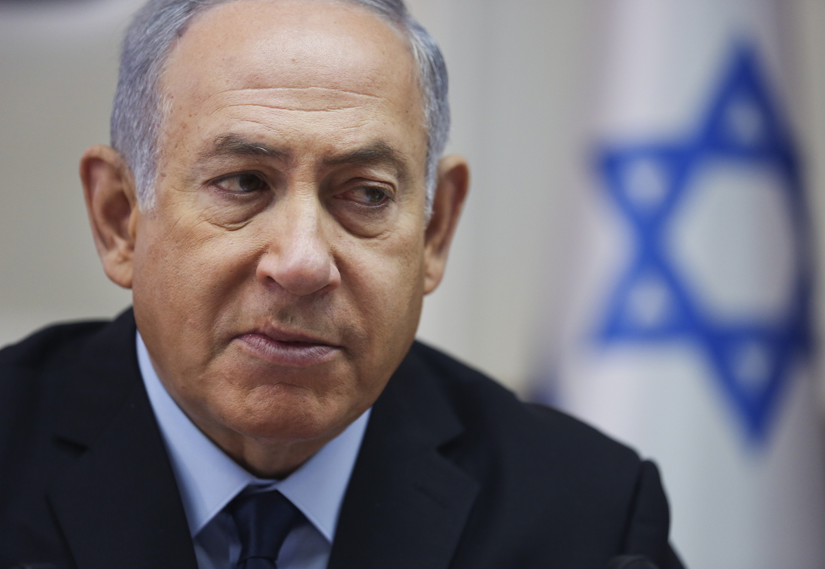 epa07126061 Israel Prime Minister Benjamin Netanyahu attends the weekly cabinet meeting at his office in Jerusalem, 28 October 2018. EPA/ODED BALITY / POOL POOL PHOTO