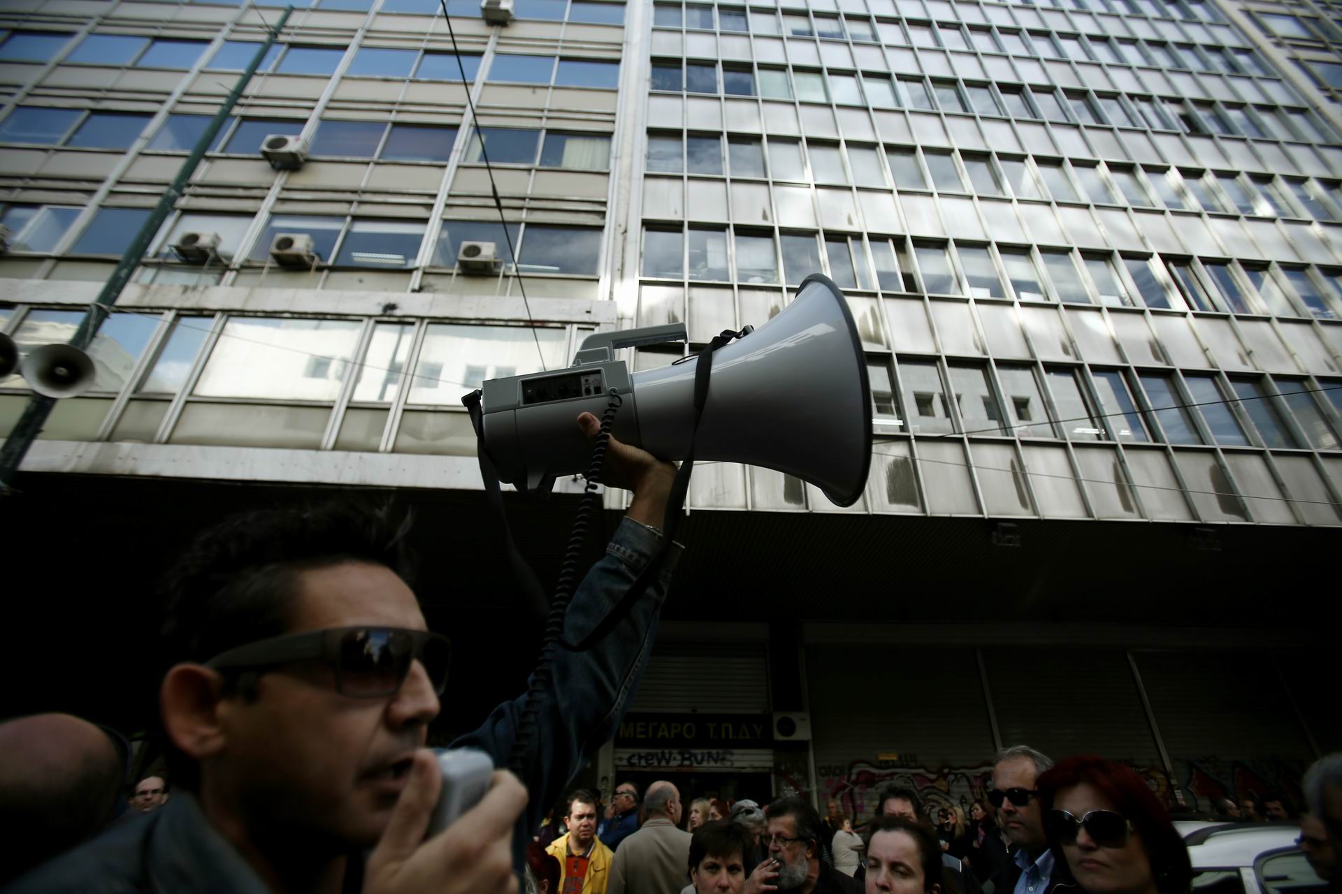 Συγκέντρωση διαμαρτυρίας έξω από το υπουργείο Εργασίας, του συνδικάτου ΟΤΑ και της Συντονιστικής Επιτροπής Αγώνα των εργαζομένων 5μηνης διαρκείας, στους δήμους της χώρας. Αθήνα, Πέμπτη 26 Νοεμβρίου 2015.