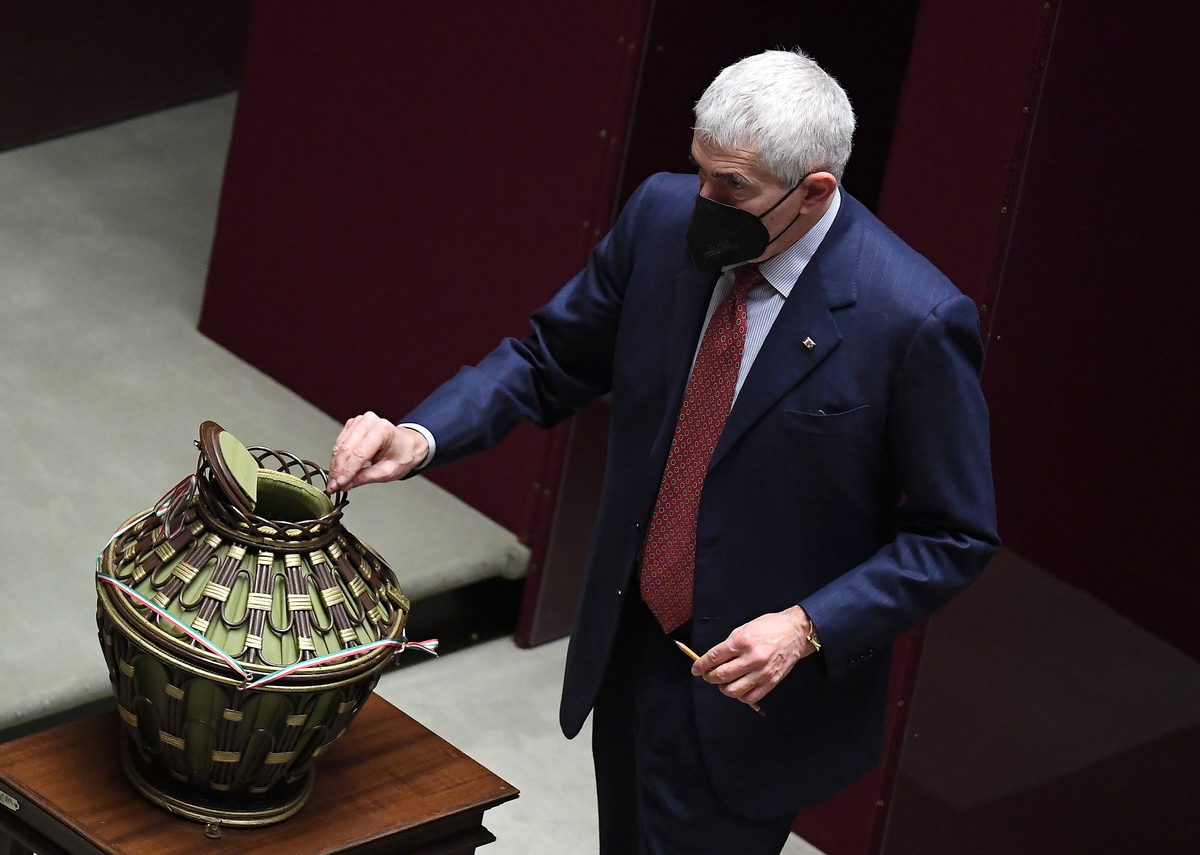 epa09712030 Italian Senator Pier Ferdinando Casini casts his ballot at the Lower House (Chamber of Deputies) in Rome, Italy, 27 January 2022. Italian lawmakers from both houses of Parliament and regional representatives on 27 January are taking part in the fourth ballot of the presidential election, after the first three rounds of voting proved inconclusive. EPA/ETTORE FERRARI / POOL