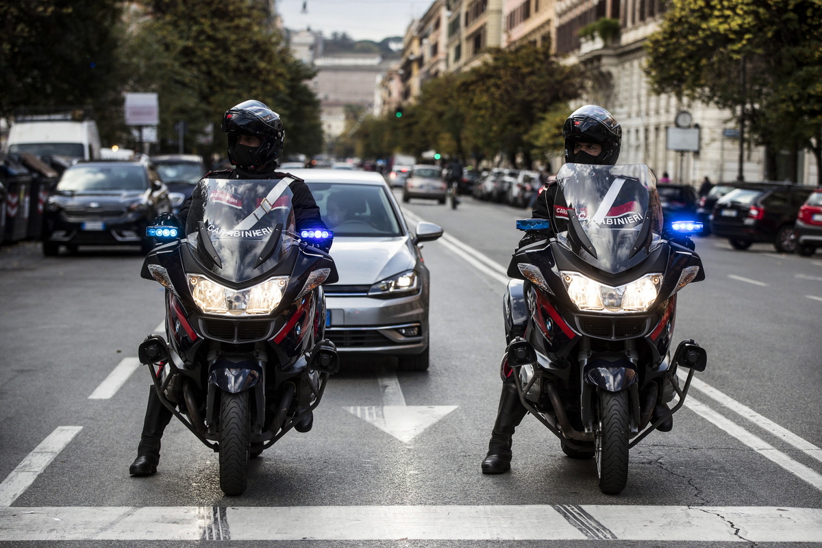 epa08821859 Italian Carabinieri police officers control the social distancing and the individual protections of people during the Coronavirus Covid-19 pandemic emergency in Rome, Italy, 15 November 2020. EPA/ANGELO CARCONI
