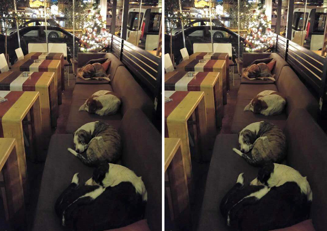 Ο Αντώνης (ψευδώνυμο), σερβιτόρος της καφετέριας, δήλωσε στην Independent πως αυτό συμβαίνει από το περασμένο καλοκαίρι. «Στην πόλη έχουμε πολλά σκυλιά. Όταν το μπαρ κλείνει κάθε βράδυ, τα σκυλιά έρχονται και κοιμούνται εδώ. Δεν έχουμε κανένα πρόβλημα. Από τον Ιούλιο, κάθε βράδυ, κάποιος σκύλος κοιμάται στον καναπέ».