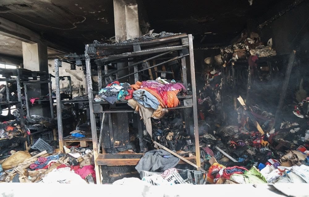 Aμέσως πήρε διαστάσεις λόγω των εύφλεκτων ειδών, κυρίως ρουχισμού και άλλων αντικειμένων, που κατεστράφησαν.