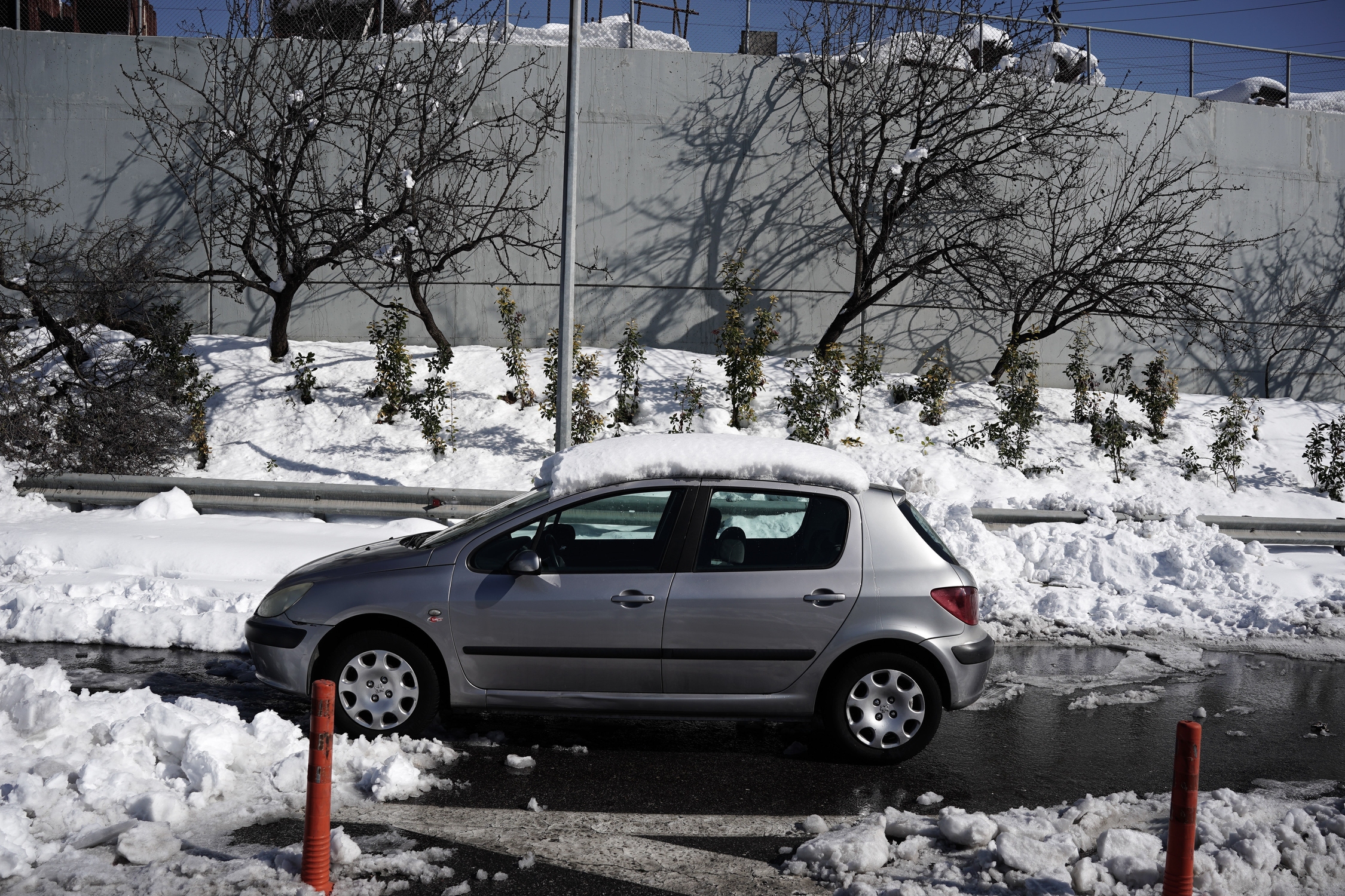 Snow removal works on Attiki Odos by the Greek Army in the area of Pallini, January 26, 2022./ Εργασίες καθαρισμού του χιονιού στην Αττική Οδό από τον Ελληνικό Στρατό στην περιοχή της Παλλήνης, 26 Ιανουαρίου 2022.