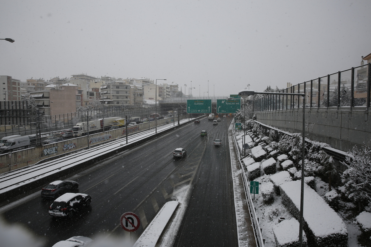 Áõôïêßíçôá êïõíïýíôáé åí ìÝóù ÷éïíüðôùóçò óôçí ÁôôéêÞ ïäü, ÄåõôÝñá 24 Éáíïõáñßïõ 2022. Åðß ðïäüò âñßóêåôáé ïëüêëçñïò ï ìç÷áíéóìüò ôçò ÔïðéêÞò Áõôïäéïßêçóçò óôçí ÁôôéêÞ. Ç êáêïêáéñßá «Åëðßò» åðåëáýíåé, ôï ÷éüíé ðÝöôåé êáé Þäç ïé ðåñéóóüôåñåò ðåñéï÷Ýò ôïõ íïìïý Ý÷ïõí íôõèåß óôá ëåõêÜ. ÁÐÅ-ÌÐÅ/ÁÐÅ-ÌÐÅ/ÁËÅÎÁÍÄÑÏÓ ÂËÁ×ÏÓ