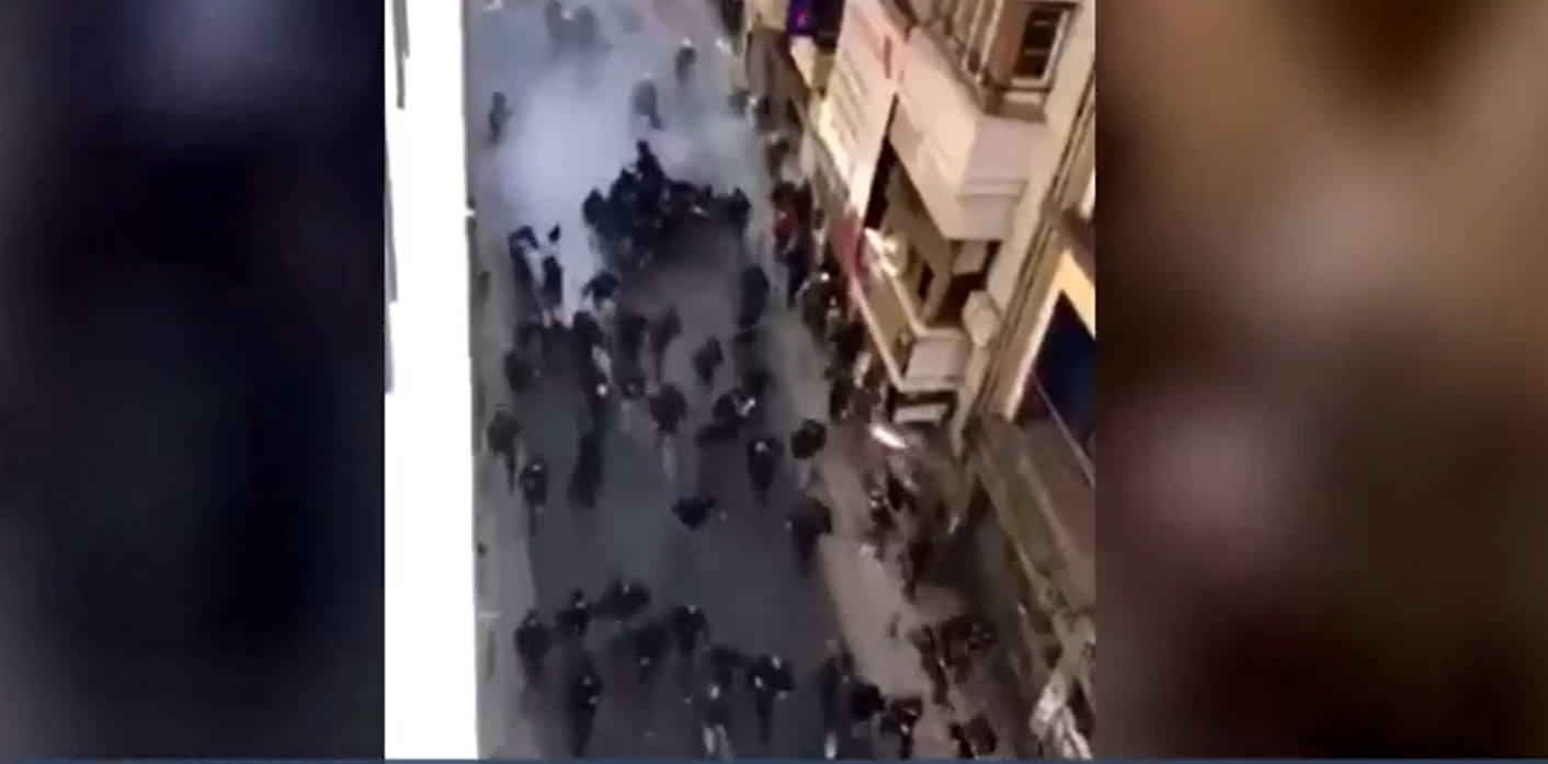 Οι πορευόμενοι αιφνιδιαστικά επιτέθηκαν με ρίψη πυροσβεστήρων, καρεκλών και άλλων αντικειμένων στις αστυνομικές δυνάμεις που ακολουθούσαν, οι οποίες άμεσα τους απώθησαν.