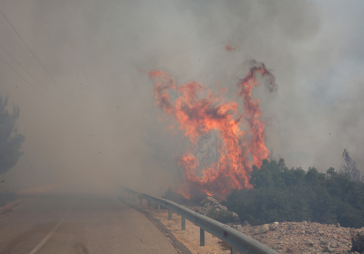 «Μόνο όταν έρχονται κανάλια και τραβάνε τι γίνεται, μόνο τότε πετάνε τα αεροπλάνα για να δείχνουν κινητοποίηση. Παρακαλώ μην φύγετε. Υπάρχουν και μικρά παιδιά…Γι’ αυτό έτρεξα να σας προλάβω. Να μην φύγετε γιατί θα καούμε» είπε η γυναίκα στο τηλεοπτικό συνεργείο.
