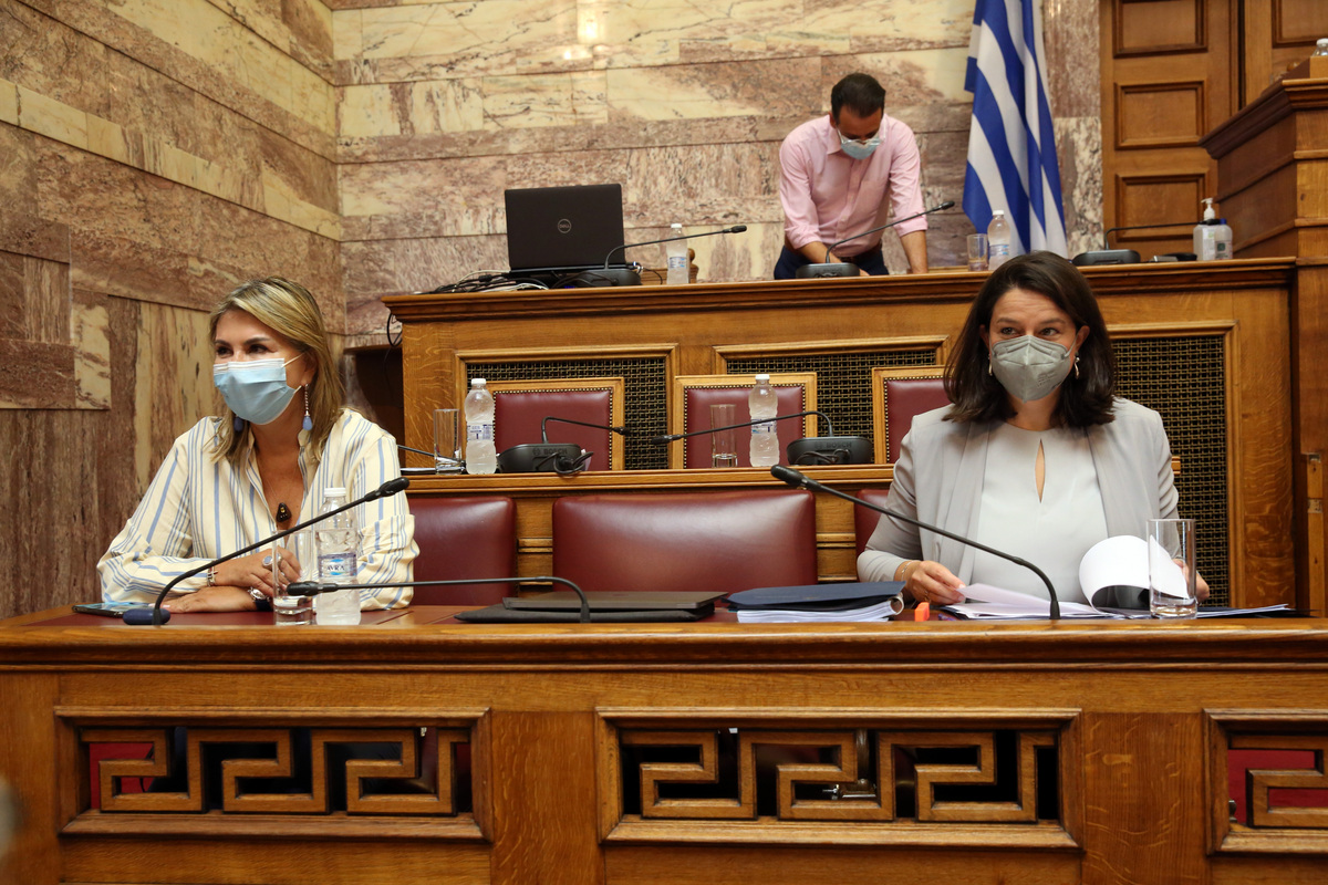 Η υπουργός Παιδείας Νίκη Κεραμέως (Δ) και η υφυπουργός Ζέτα Μακρή, παρίστανται στη συνεδρίαση της Διαρκούς Επιτροπής Μορφωτικών Υποθέσεων με θέμα ημερήσιας διάταξης: Επεξεργασία και εξέταση του σχεδίου νόμου του Υπουργείου Παιδείας και Θρησκευμάτων «Αναβάθμιση του σχολείου, ενδυνάμωση των εκπαιδευτικών και άλλες διατάξεις», Τρίτη 20 Ιουλίου 2021. ΑΠΕ-ΜΠΕ/ΑΠΕ-ΜΠΕ/Αλέξανδρος Μπελτές