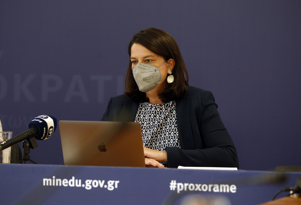 Η υπουργός Παιδείας και Θρησκευμάτων Νίκη Κεραμέως μιλάει σε συνέντευξη Τύπου με αφορμή την επικείμενη θέση σε διαβούλευση του ν/σ «Αναβάθμιση του σχολείου και ενδυνάμωση των εκπαιδευτικών», σε αίθουσα του υπουργείου, Τετάρτη 30 Ιουνίου 2021. ΑΠΕ-ΜΠΕ/ΑΠΕ-ΜΠΕ/ΑΛΕΞΑΝΔΡΟΣ ΒΛΑΧΟΣ