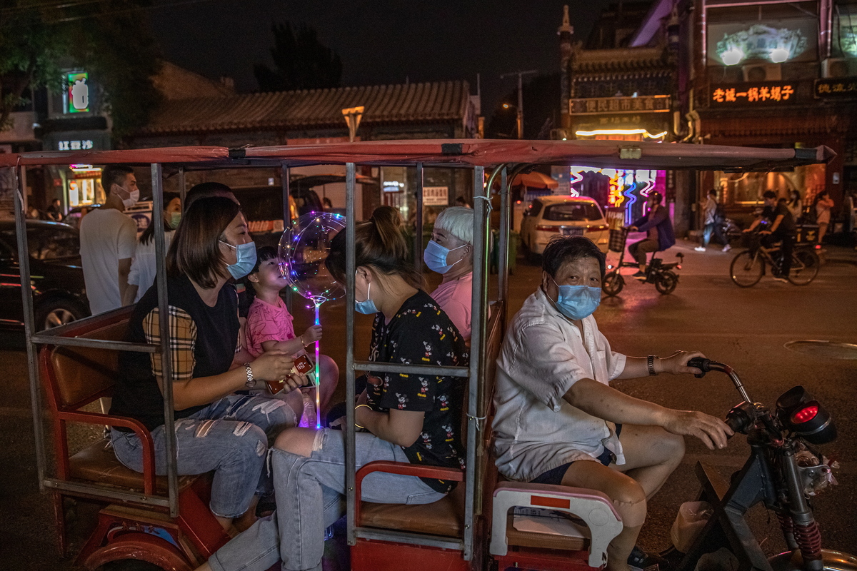 epa08473402 People wearing protective face masks ride in a vehicle on a road in Beijing, China, 08 June 2020. The nationwide lockdown during the COVID-19 coronavirus pandemic has caused unemployment and contraction of China's economy. EPA/ROMAN PILIPEY