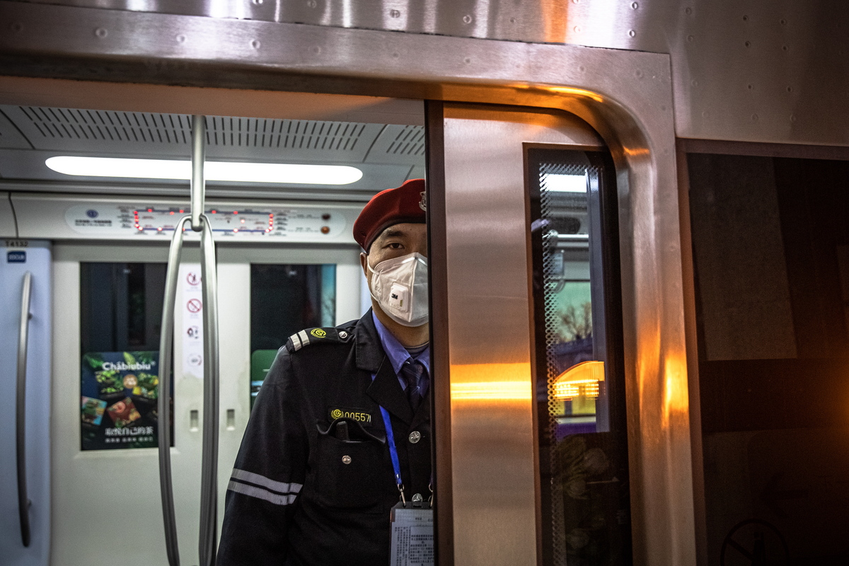 epa08208479 A subway worker wearing a protective face mask gets out of a subway carriage in Beijing, China, 10 February 2020. Major China's cities began going back to work after the Lunar New Year holiday, which was extended in an attempt to contain the spread of the deadly coronavirus across the country. The novel coronavirus (2019-nCoV), which originated in the Chinese city of Wuhan, has so far killed at least 910 people and infected over 40,000 others, mostly in China. The death toll from the novel coronavirus has surpassed the death toll from SARS epidemic of 2002-2003. EPA/ROMAN PILIPEY