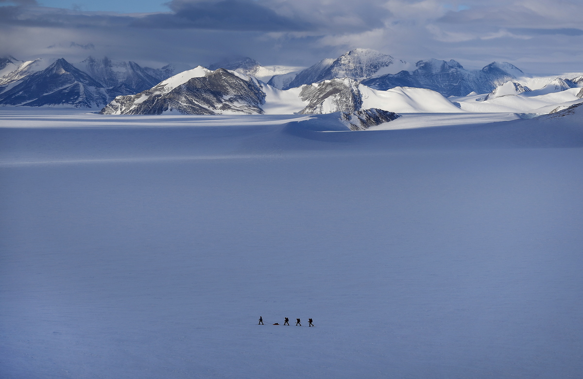 Ο Χιλιανός επιστήμονας Ricardo Jana και μια ομάδα εξερευνητών του στρατού, εντοπίζουν μια περιοχή με GPS κοντά στο Higgins Nunatak, στον παγετώνα Union, στα βουνά Ellsworth. Ανταρκτική, 29 Νοεμβρίου 2018.