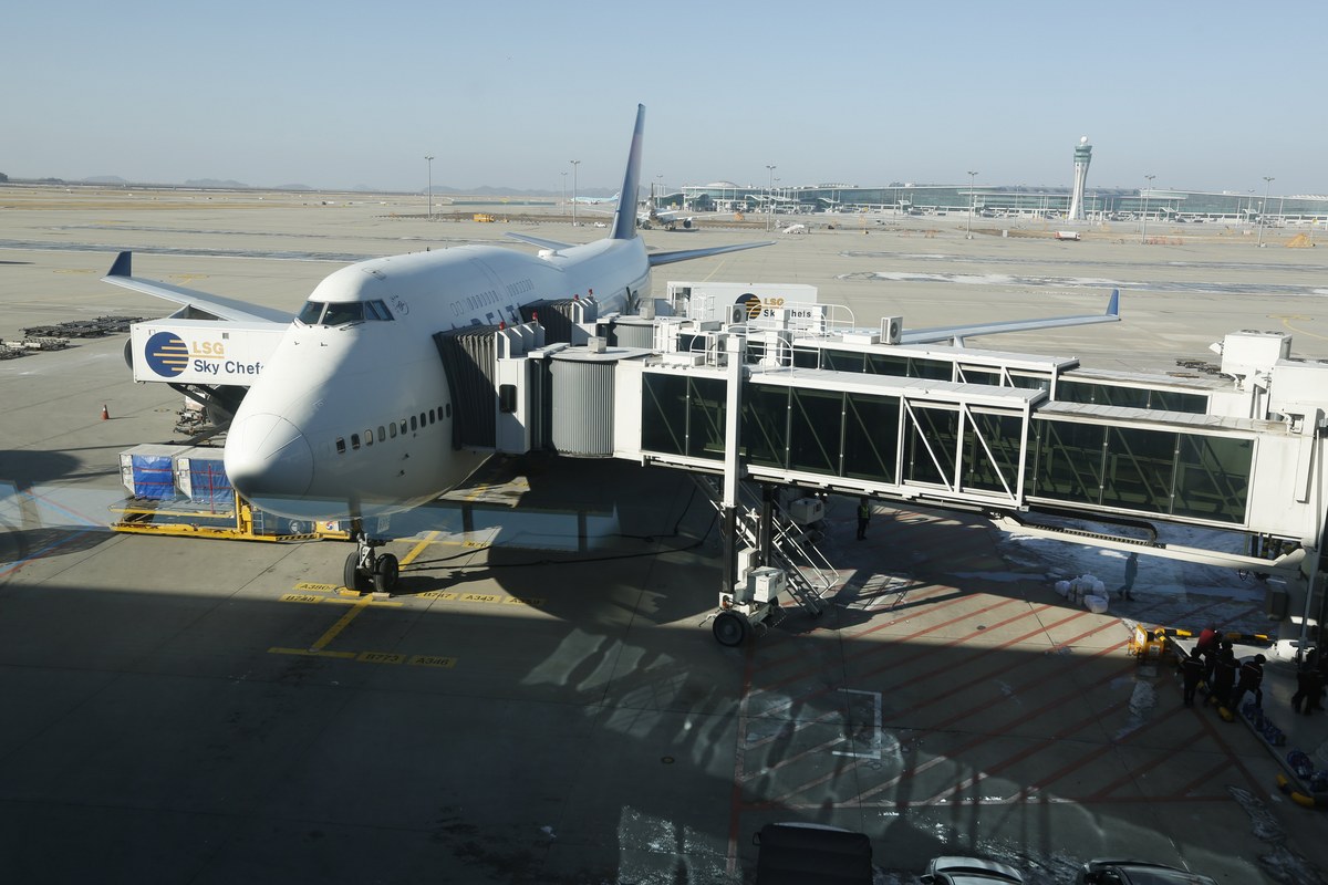 epa06398008 A Boeing 747 aircraft of Delta Air Lines is parked at Incheon International Airport in Incheon, South Korea, 19 December 2017. The iconic Boeing 747 jumbo jet will pass into aviation history nearly 50 years after its debut. The 747 will take its final commercial flight with American carrier Delta Air Lines flight from Seoul to Detroit, Michigan on 19 December 2017. EPA/JEON HEON-KYUN