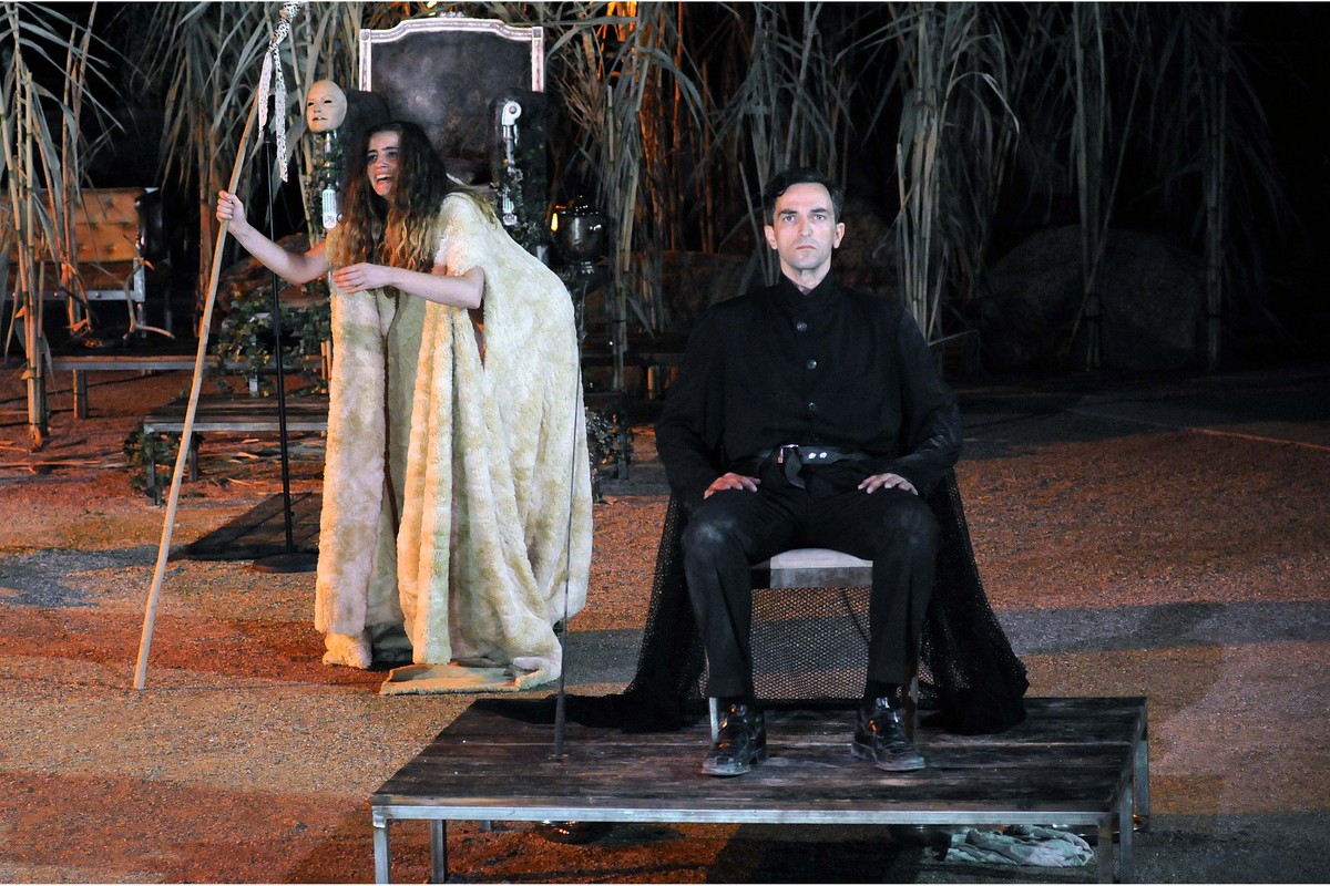 Φωτογραφία που δόθηκε σήμερα στη δημοσιότητα και εικονίζει ηθοποιούς της θεατρικής ομάδας "Θέατρο Δωματίου" να συμμετέχουν στην παράσταση με τίτλο "Βάκχες του Ευριπίδη", σε σκηνοθεσία Άντζελας Μπρούσκου στο Αρχαίο Θέατρο Επιδαύρου, Παρασκευή 8 Αυγούστου 2014. Η παράσταση εντάσσεται στο πλαίσιο των εκδηλώσεων του Φεστιβάλ Αθηνών και Επιδαύρου και παρουσιάστηκε στο κοινό στις 8 και 9 Αυγούστου 2014. Στην παράσταση έλαβαν μέρος οι: Αγλαΐα Παππά (Διόνυσος), Αριστείδης Σερβετάλης (Πενθέας), Μαρία Κίτσου (Τειρεσίας), Γιώργος Μπινιάρης (Κάδμος), Αργύρης Πανταζάρας, Χάρης Χαραλάμπους (Δούλος-Άγγελος), Παρθενόπη Μπουζούρη, (άλλος άγγελος), Άντζελα Μπρούσκου (Αγαύη). Κυριακή 10 Αυγούστου 2014. ΑΠΕ-ΜΠΕ/ ΦΕΣΤΙΒΑΛ ΑΘΗΝΩΝ ΚΑΙ ΕΠΙΔΑΥΡΟΥ/ ΕΥΗ ΦΥΛΑΚΤΟΥ