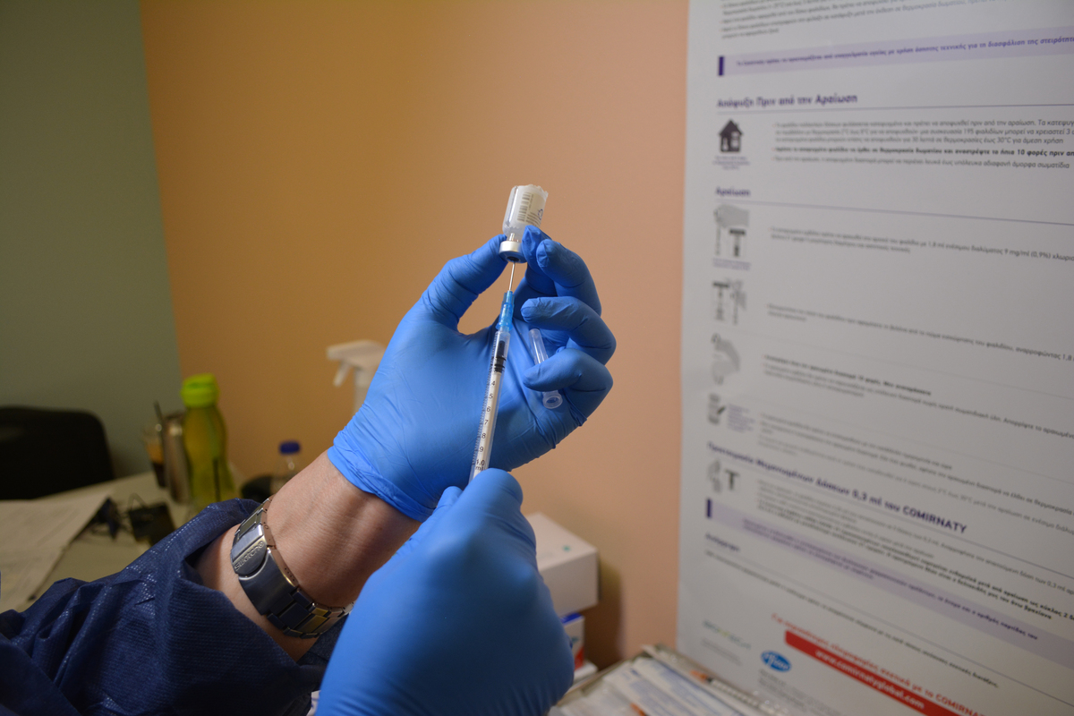 (ÎÝíç Äçìïóßåõóç) Îåêßíçóáí êáé óôá ×áíéÜ ïé åìâïëéáóìïß êáôÜ ôïõ êïñïíïúïý, ÄåõôÝñá 4 Éáíïõáñßïõ 2021. Óôï Íïóïêïìåßï ×áíéþí , îåêßíçóáí óÞìåñá ïé åìâïëéáóìïß éáôñéêïý êáé õãåéïíïìéêïý ðñïóùðéêïý. ÁÐÅ ÌÐÅ/ 7ç ÕÐÅ/ STR
