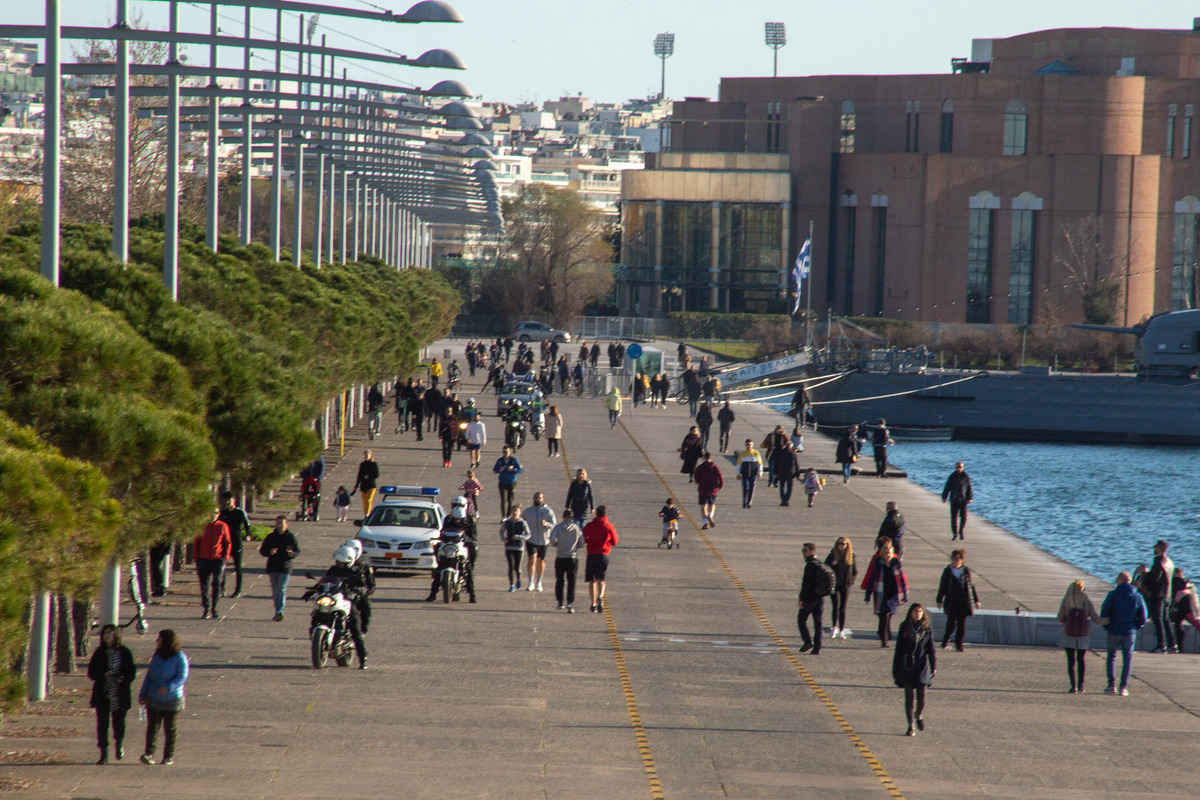 Κλιμάκιο της Δημοτικής Αστυνομίας μαζί με αστυνομικούς της ΕΛΑΣ κάνουν συστάσεις να επιστρέψουν στα σπίτια τους ο κόσμος που κάνει βόλτα σε κεντρικά σημεία της Θεσσαλονίκης αψηφώντας την προτροπή του Υπουργείου Υγείας να μείνουν σπίτι λόγω του κορονοϊού, Τρίτη 17 Μαρτίου 2020. ΑΠΕ-ΜΠΕ/ΑΠΕ-ΜΠΕ/ΝΙΚΟΣ ΑΡΒΑΝΙΤΙΔΗΣ
