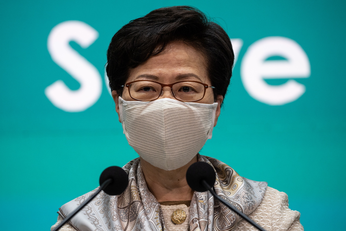 epa08415953 Hong Kong Chief Executive Carrie Lam speaks during a press conference in Hong Kong, China, 12 May 2020. EPA/JEROME FAVRE