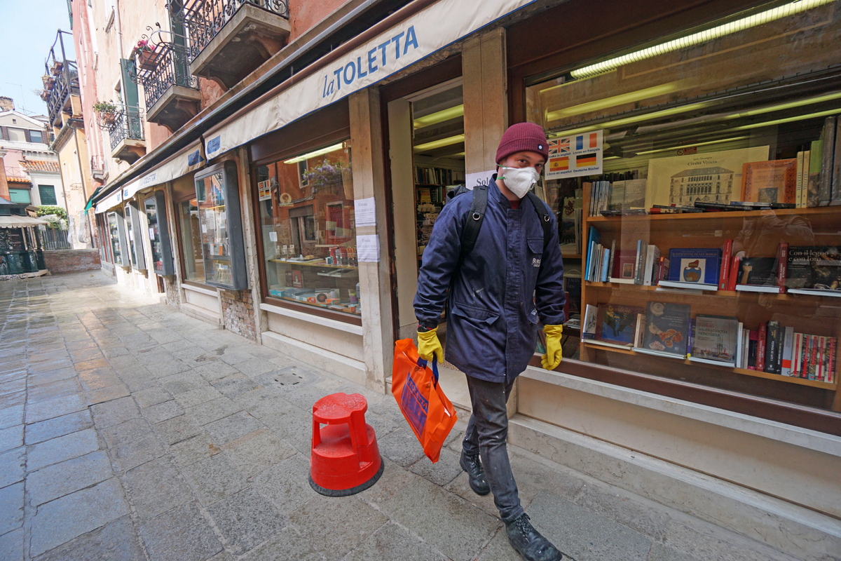 Τα βιβλιοπωλεία και τα χαρτοπωλεία, καθώς και τα καταστήματα παιδικών ενδυμάτων, επετράπη να ανοίξουν εκ νέου από την περασμένη Τρίτη, αλλά τα ρολά τους θα ανεβαίνουν μόνο δύο ημέρες την εβδομάδα στην περιφέρεια του Βένετο (βορειοανατολικά), της οποίας η Βενετία είναι η πρωτεύουσα.